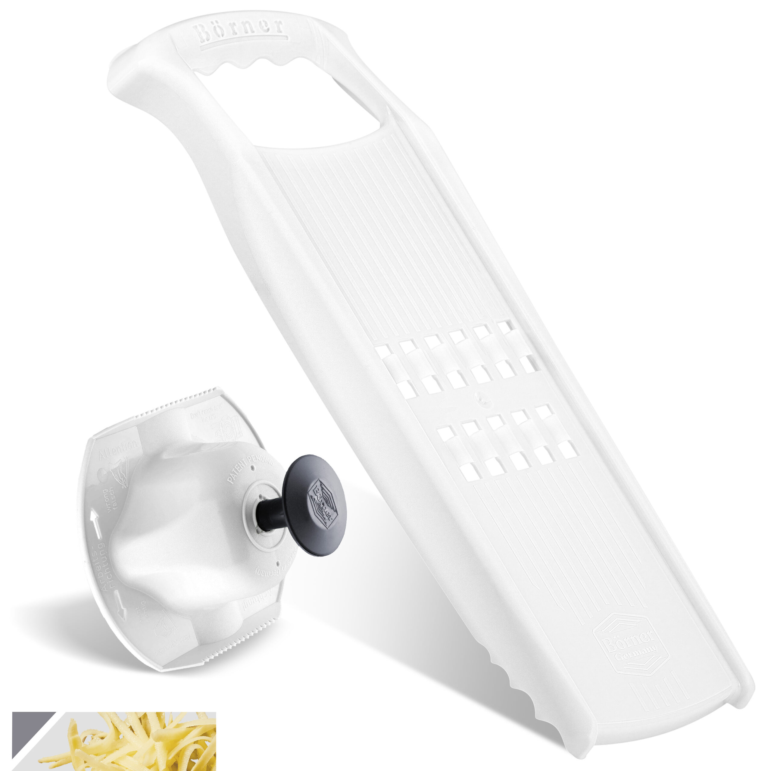 With the original Börner Roko grater you can cut fruit and vegetables into fine thin julienne strips. Our Julienne Cutter cuts root vegetables such as carrots, celery, parsnips or kohlrabi. But also potatoes or cucumbers can be grated and processed into fine julienne strips, e.g. for raw vegetable salads. The rows of blades, ground on both sides, cut large quantities in the shortest possible time, as cutting can be done in both directions. Perfectly suited is the julienne grater for the preparation of vegetable pans such as wok vegetables. In addition, the Roko Powerline can be ideally used as a zucchini spaghetti cutter and conjure up delicious dishes.