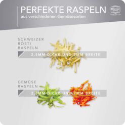 Bereiten Sie mit unserer Kartoffelpuffereibe ganz einfach Schweizer Rösti zu! Verwandeln Sie Kartoffeln sowie anderes Gemüse ganz nach Geschmack und Belieben zu leckeren Gerichten. Die Börner Rösti PowerLine Reibe eignet sich auch ideal zur Herstellung von Zucchinipuffern.