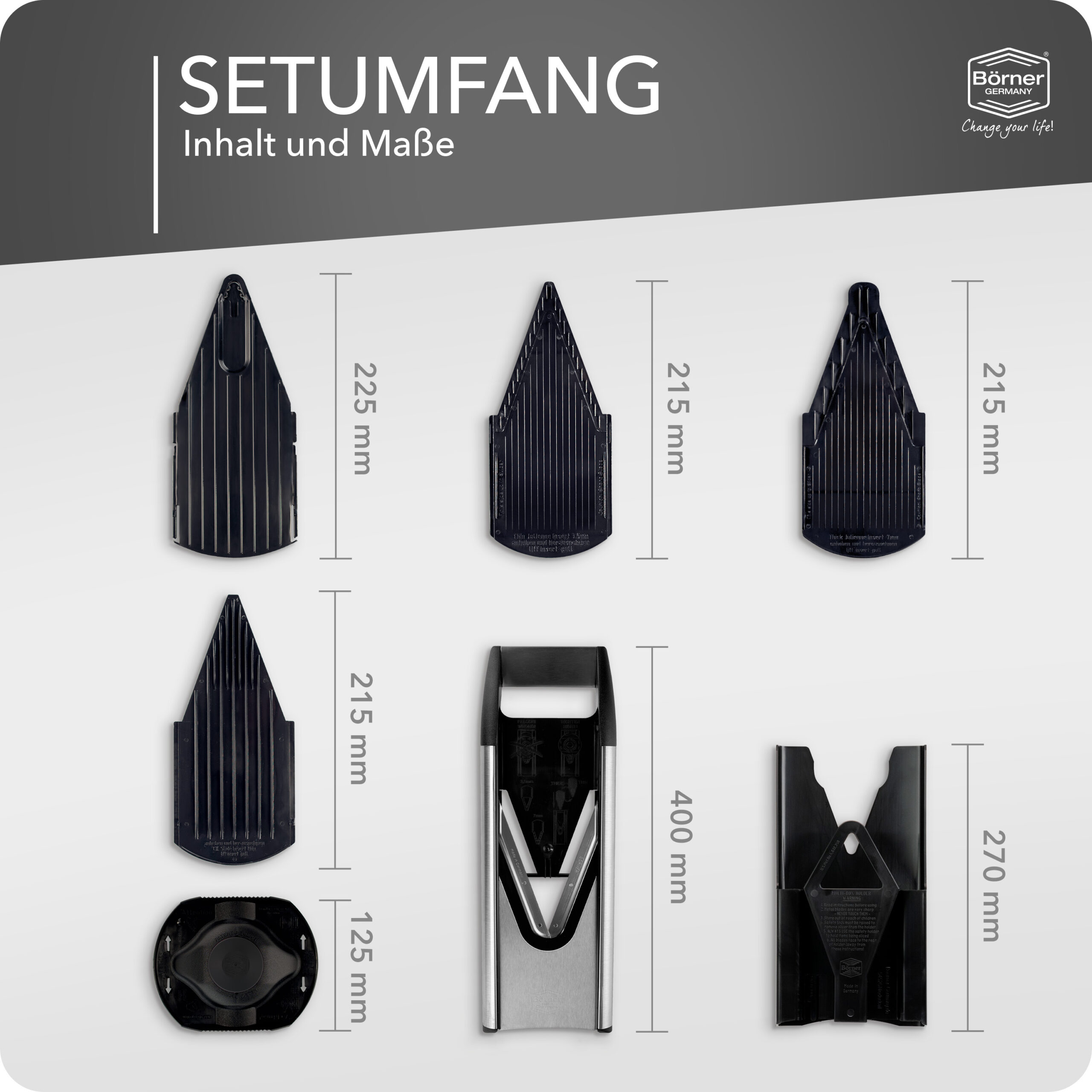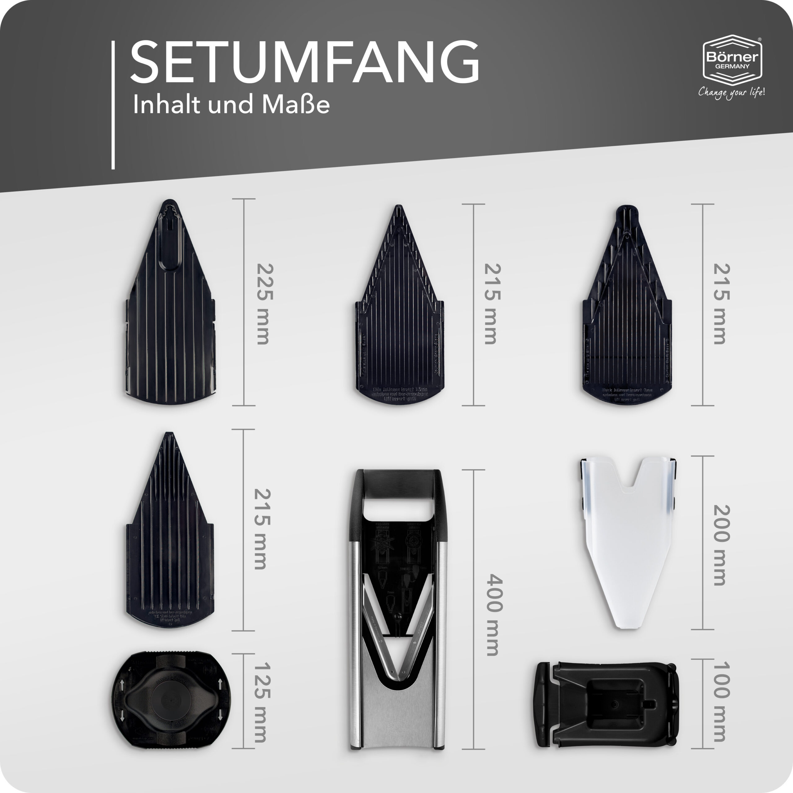 Bestandteile des Börner Gemüseschneider Edelstahl V6 ExclusiveLine – Starter Sets